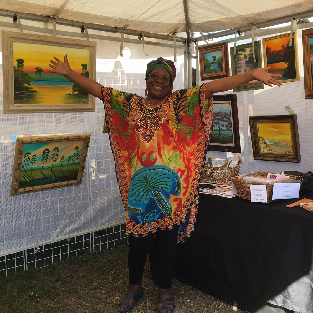Doretha was the wife of the Alfred Hair, the man who started it the Highwaymen movement. She learned to paint at his side and watched and joined a group of self-taught black artists who once sold their paintings out of the trunks of cars, now have paintings hanging in the White House, the State Capital and on mega-yachts.